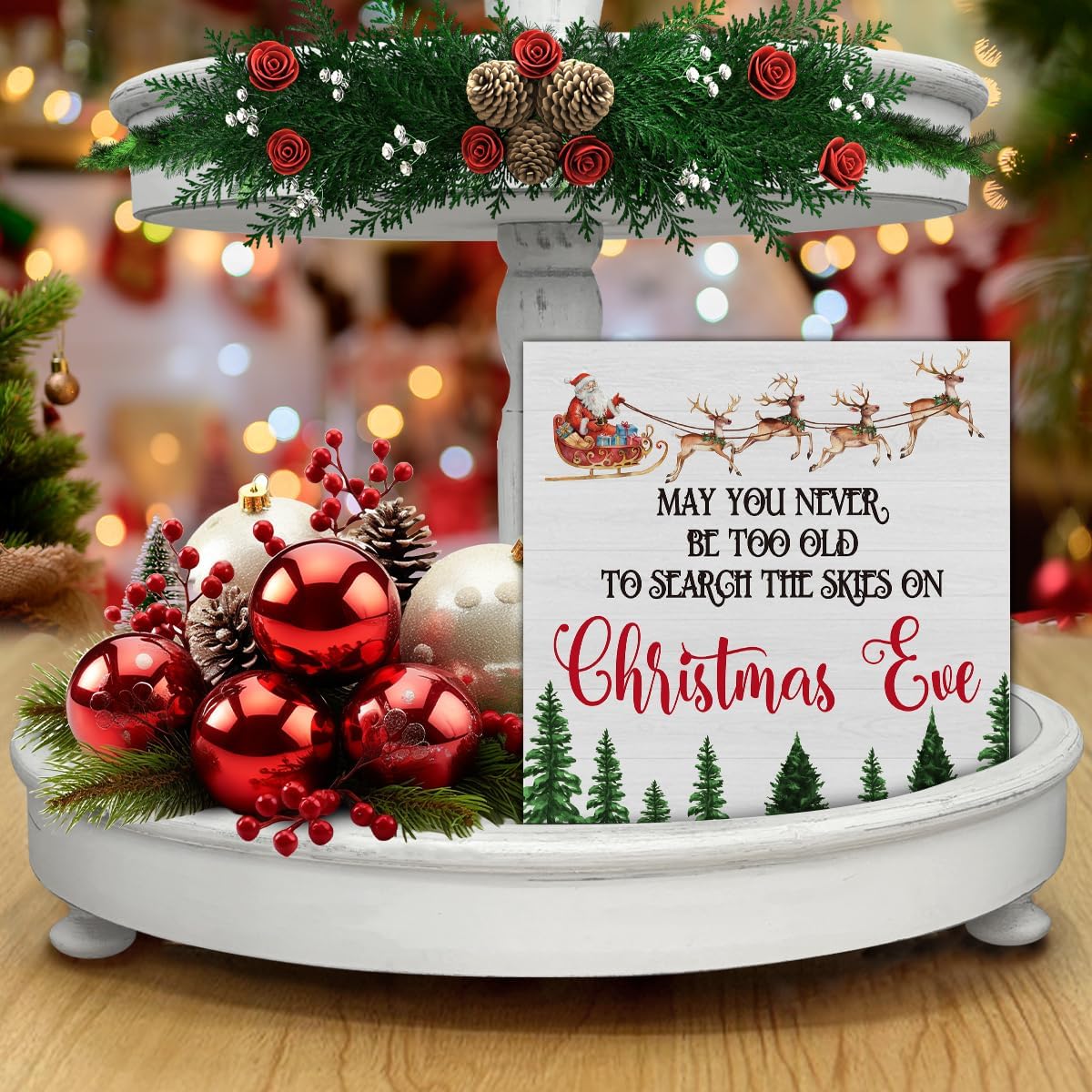 As the holiday season draws near, we find ourselves yearning for ways to infuse our spaces with warmth, cheer, and a touch of whimsy. Enter the “Funny Farmhouse Wooden Sign Decor – May You Never Be Too Old to Search the Skies”-a delightful 5 x 5 inch wooden sign that promises to uplift any corner of your home this Christmas. We were immediately drawn to its charming design, which perfectly merges classic holiday elements with a sprinkle of playful sentiment.