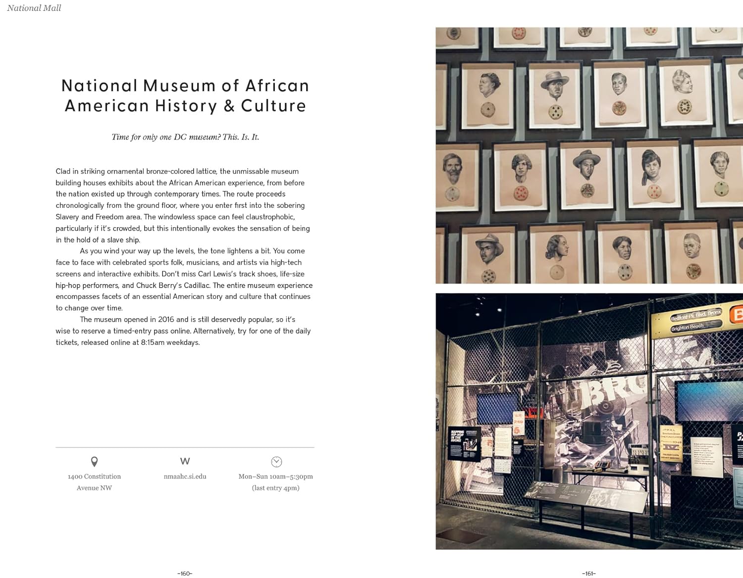 A: The book covers a wide range of activities and sights, from important cultural venues like the National Museum of African American History and Culture to local favorites in the form of open-air spaces and shops. There’s something for everyone, whether we want to soak in culture or relax at a quaint café.